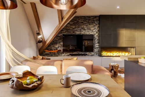 Hledali jsme moderní podobu bydlení na horách, která by byla luxusní a zároveň pohodlná a respektovala by horské prostředí, ve kterém se nachází. Inspiroval nás proto horský interiér severských zemí Evropy.